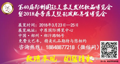 最后,2018年鄭州美博會(huì)招展火熱進(jìn)行中,你是否已經(jīng)按耐不住了呢?招展電話:0371-66200988。當(dāng)然關(guān)注鄭州美博會(huì)微信公眾號(hào)也是一個(gè)不錯(cuò)的選擇哦!歡迎拿出微信搜索“鄭州美博會(huì)”關(guān)注我們,隨時(shí)獲得最新的鄭州美博會(huì)信息!