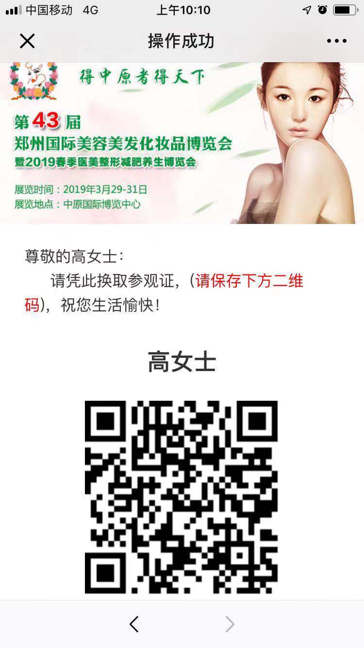 5、生成二維碼,截屏保存在手機(jī)上,美博會憑此換取參觀證