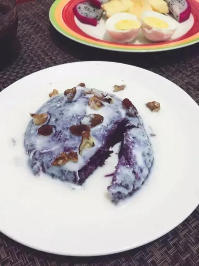 酸奶淋紫薯。簡單高顏值,換成紅薯也可以。
