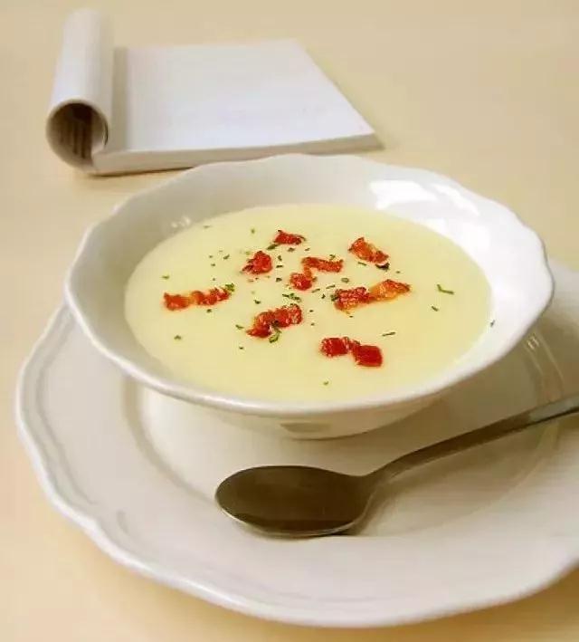 5)土豆泥倒回湯鍋,加入牛奶、鹽、胡椒粉開鍋即可。