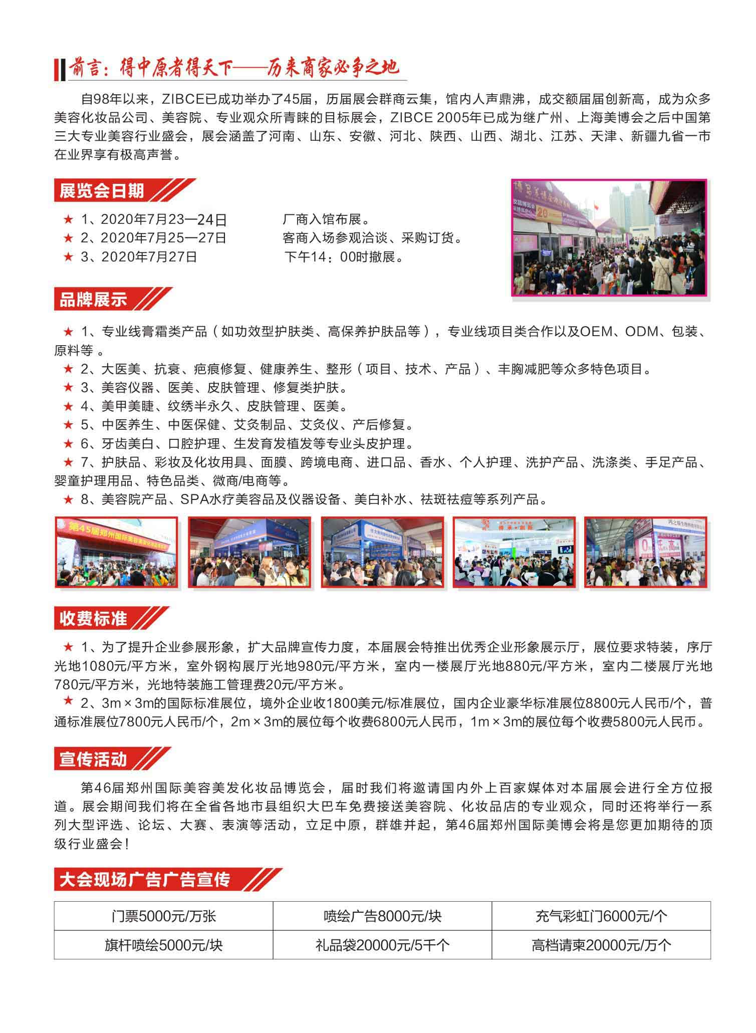 自98年以來(lái),ZIBCE已成功舉辦了45屆,歷屆展會(huì)群商云集,館內(nèi)人聲鼎沸,成交額屆屆創(chuàng)新高,成為眾多美容化妝品公司、美容院、專業(yè)觀眾所青睞的目標(biāo)展會(huì),ZIBCE 2005年已成為繼廣州、上海美博會(huì)之后中國(guó)第三大專業(yè)美容行業(yè)盛會(huì),展會(huì)涵蓋了河南、山東、安徽、河北、陜西、山西、湖北、江蘇、天津、新疆九省一市在業(yè)界享有極高聲譽(yù)。