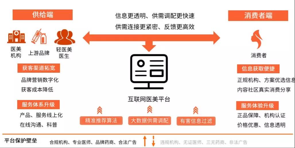 未來,互聯(lián)網(wǎng)醫(yī)美平臺有望打通輕醫(yī)美產(chǎn)業(yè)鏈上中下游,連接上游品牌與消費(fèi)者、機(jī)構(gòu)與消費(fèi)者、醫(yī)生與消費(fèi)者等全產(chǎn)業(yè)鏈環(huán)節(jié),同時依托平臺流量、營銷能力、品牌增值服務(wù)等,助力輕醫(yī)美服務(wù)體系加速數(shù)字化升級。