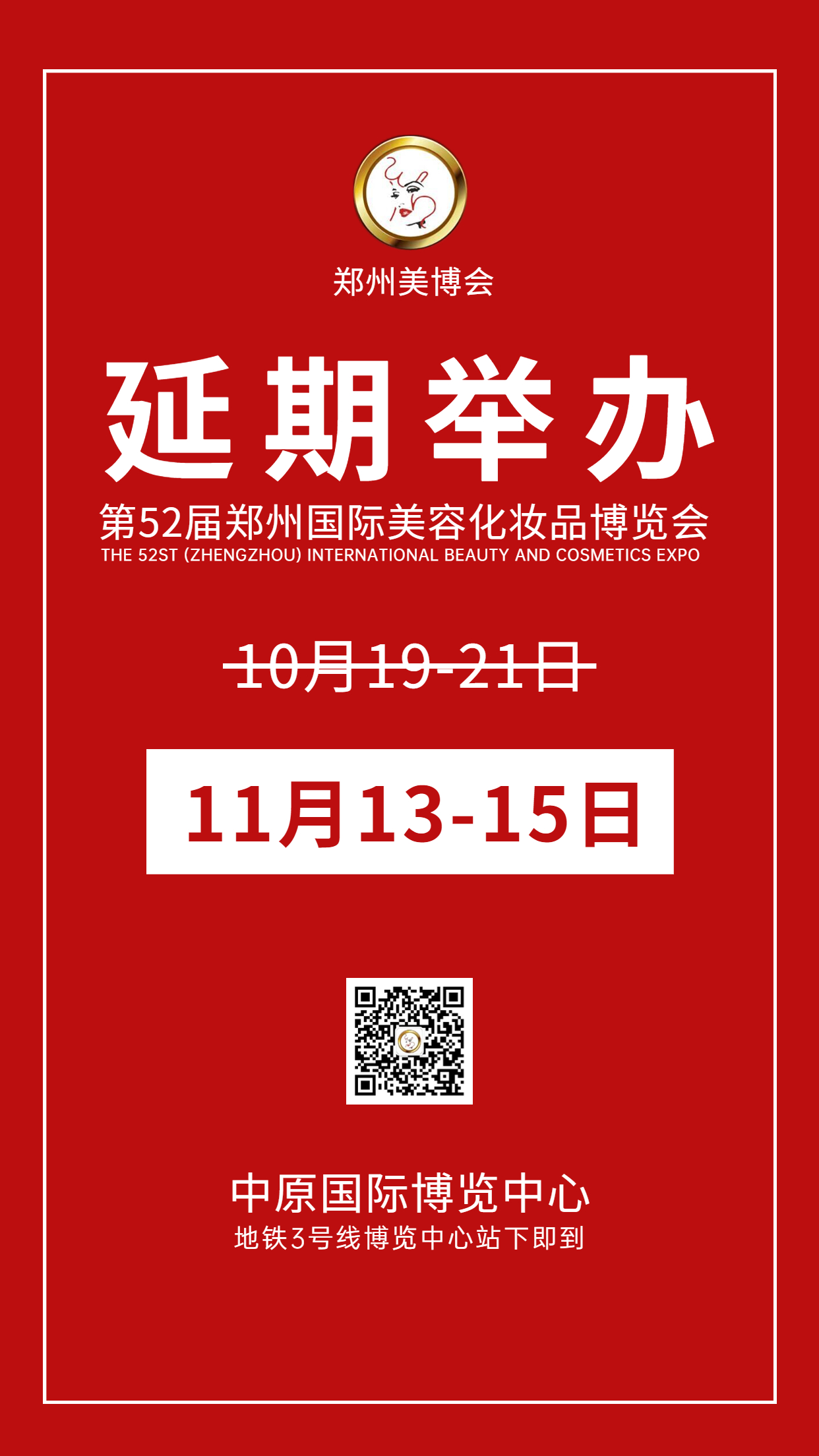 第52屆鄭州國(guó)際美博會(huì)延期舉辦,時(shí)間待定!